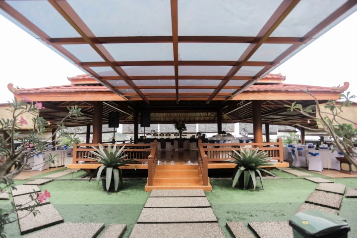 • Pelaminan Eksklusif: Dekorasi panggung utama hingga 10 meter (Custom Style).
