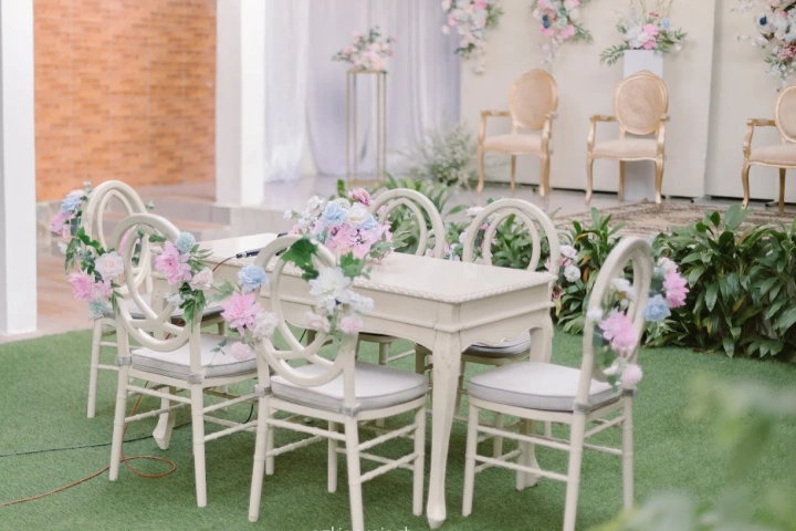 • Area Akad Nikah: Set meja akad lengkap dengan dekorasi bunga segar.