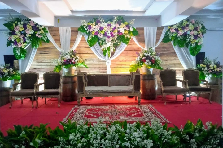• Pelaminan Eksklusif: Dekorasi panggung utama hingga 10 meter (Custom Style).