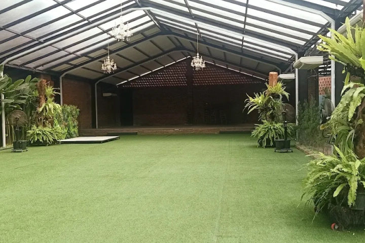 • Suasana Ruangan: Dekorasi jalan (Aisle) 20 meter, Karpet Rumput/Merah, dan Bunga Titik.