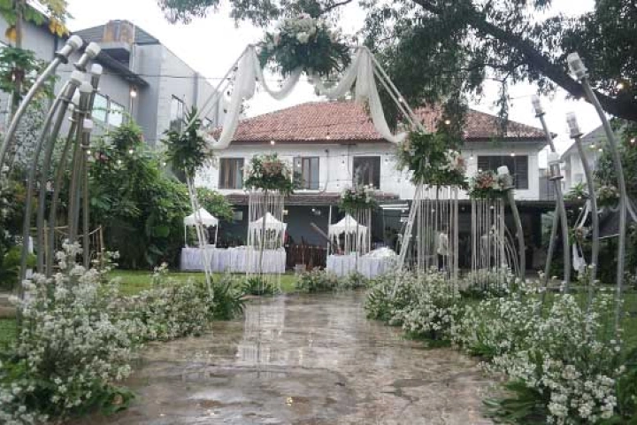 • Area Akad Nikah: Set meja akad lengkap dengan dekorasi bunga segar.