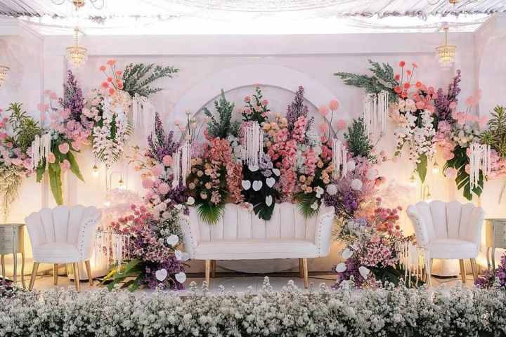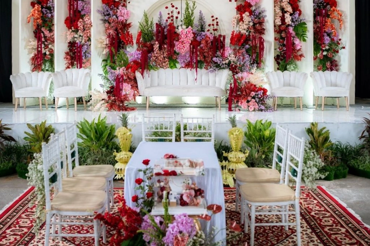 • Pelaminan Eksklusif: Dekorasi panggung utama hingga 10 meter (Custom Style).