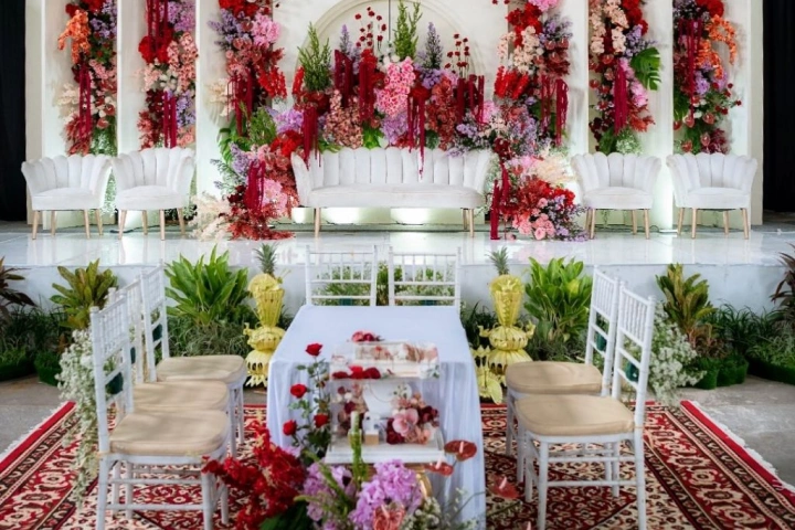 • Area Akad Nikah: Set meja akad lengkap dengan dekorasi bunga segar.