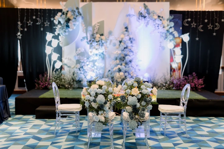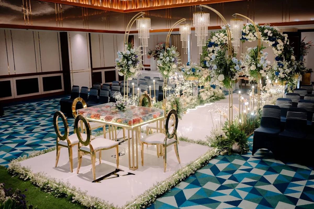 • Pelaminan Eksklusif: Dekorasi panggung utama hingga 10 meter (Custom Style).