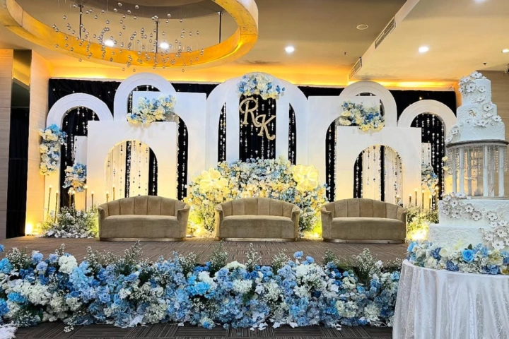 Pelaminan Eksklusif: Dekorasi panggung utama hingga 10 meter (Custom Style).